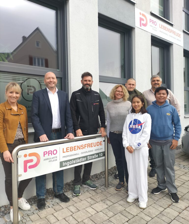 Zunächst möchten wir uns im Namen des ganzen Teams der Pro Lebensfreude für die Unterstützung und das herzliche Ankommen in Großmehring bedanken. Unsere Mannschaft ist mittlerweile von ehemals drei auf aktuell gut 20 Mitarbeiter*innen gewachsen. Der Kundenstamm liegt aktuell bei knapp 100 Haushalten, wozu uns Hr. Stingl erfreut gratulierte. „Wir gehören mittlerweile dazu!“ – Das ist ein riesiges Lob für uns.